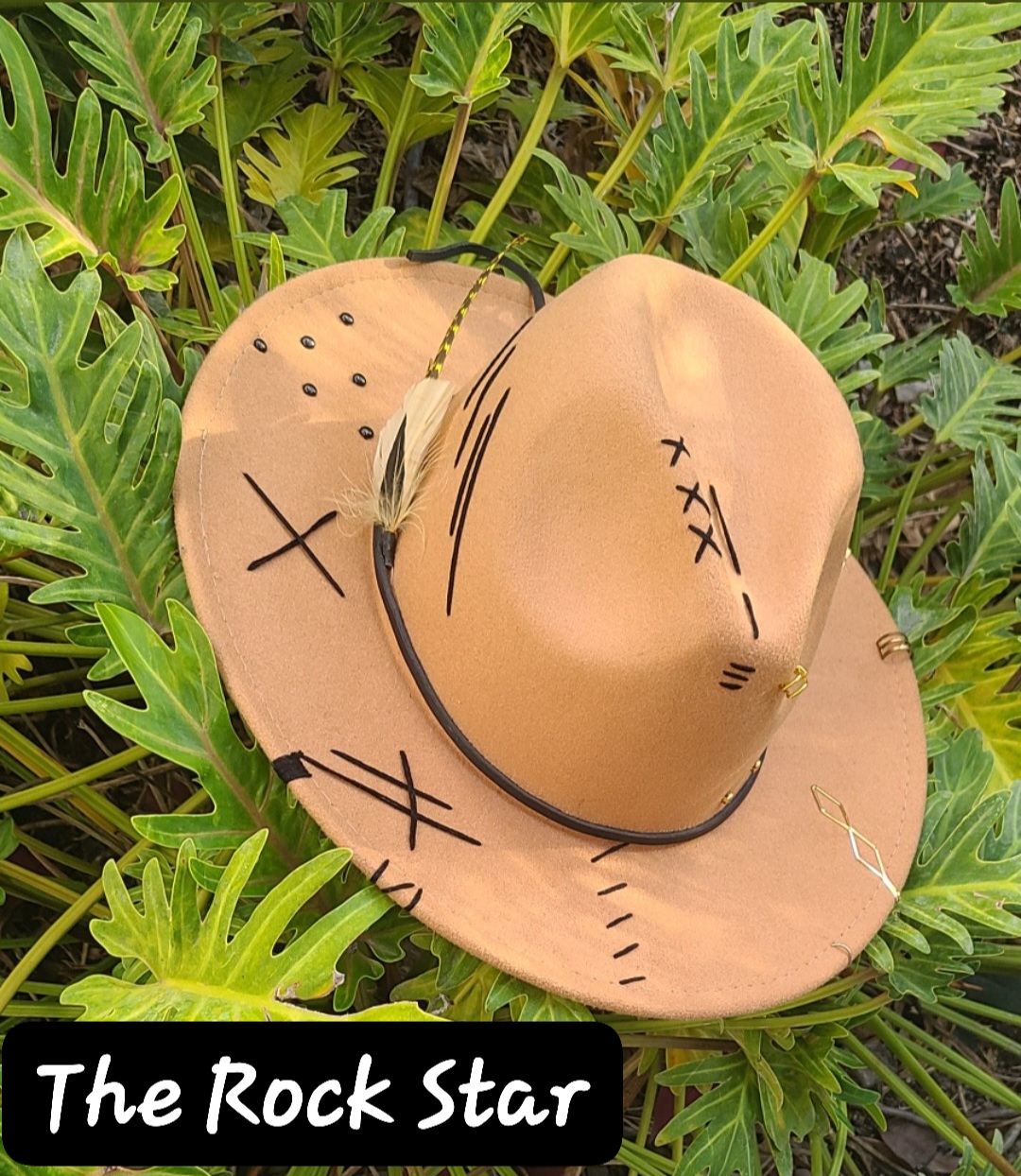 The "Rock Star" design can be created on any of our brim hats in the Hat Shop. this design is handcrafted and made with care. Design is sold separate from the hat.